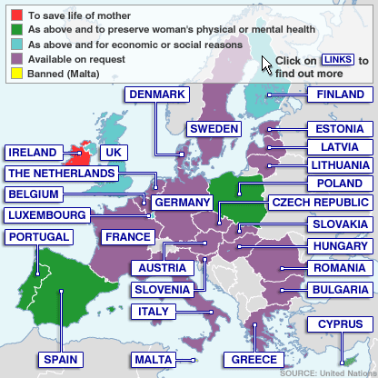 Map showing the Legal Position in Europe on Abortions (http://news.bbc.co.uk/1/hi/world/europe/6235557.stm)
