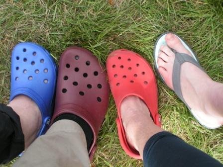 My favourite red Crocs, with some friends’ Crocs