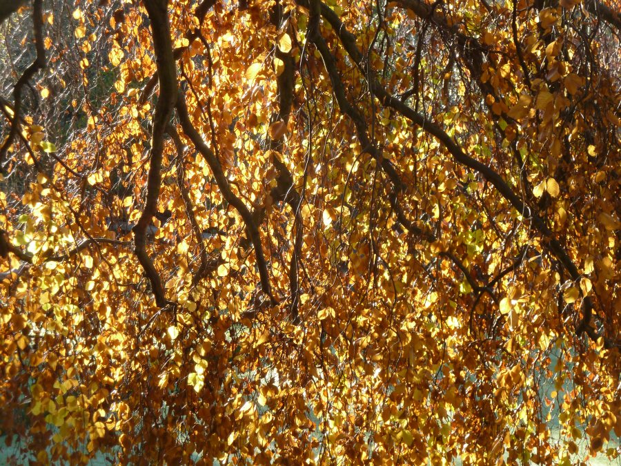 Beautiful golden beech leaves in the November sun