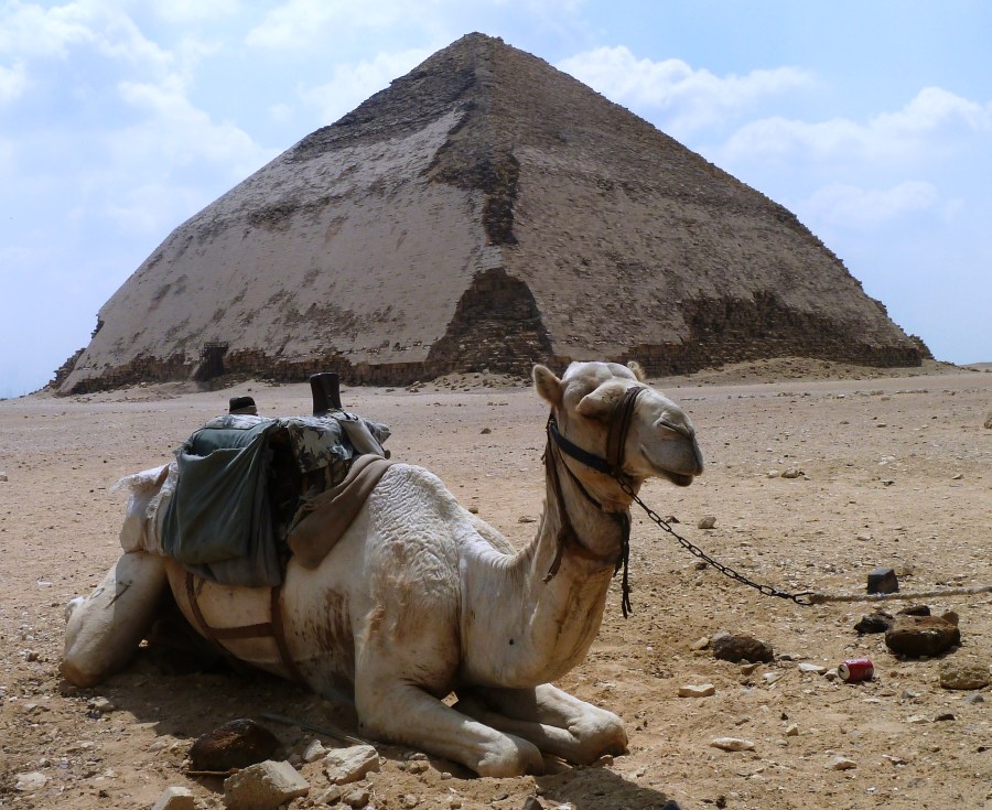This Pyramid went a bit wrong. The architect realised half way through that the angle was wrong and that the pyramid would collapse if they kept building at that slope, so it has a bend in the middle.