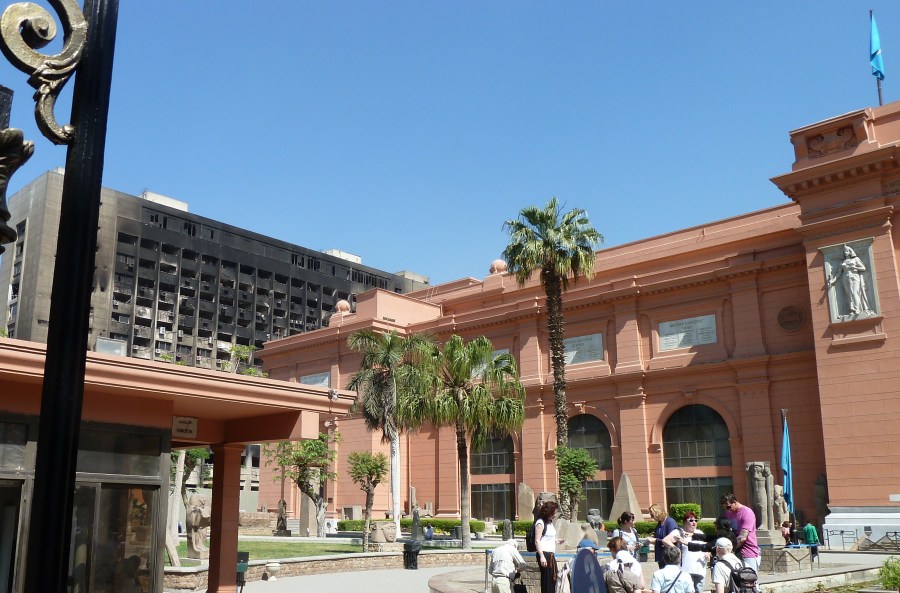 The Egyptian Museum, with a burnt-out building of Tahrir Square in the background