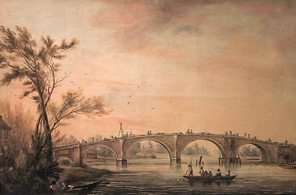 Architectural watercolour of Walton Bridge designed by James Paine, 1784