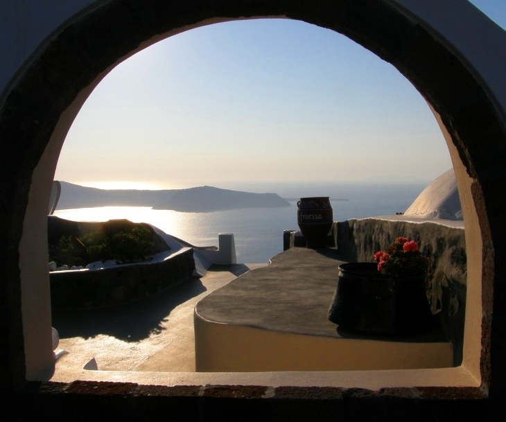 A window in Santorini, overlooking the caldera