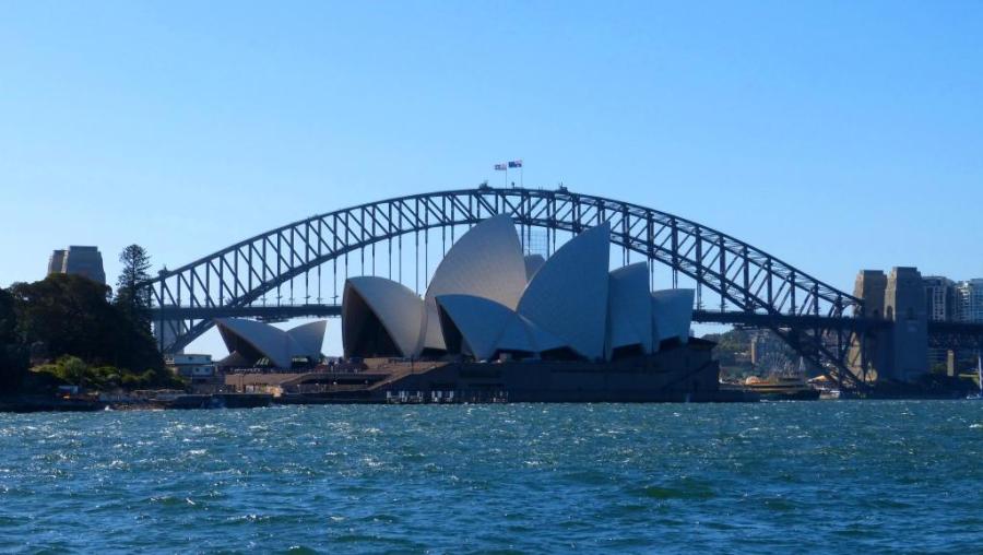 The Opera House and Sydney Harbour Bridge, surrounded by blue!