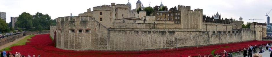 Poppies at the towerMarking 100 years since the first day of Britain’s involvement in the First World War, the major art installation ‘Blood Swept Lands and Seas of Red is at the Tower of London. Created by ceramic artist Paul Cummins, with setting by stage designer Tom Piper, 888,246 ceramic poppies will progressively fill the Tower’s famous moat over the summer. Each poppy represents a British military fatality during the war.